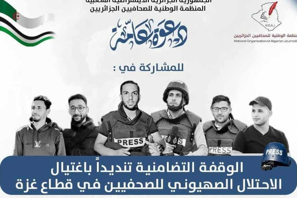 أعلنت المنظمة الوطنية للصحافيين الجزائريين عن تنظيم وقفة تضامنية مع الصحفيين الفلسطينيين، يوم الاثنين 18 أوت 2025، على الساعة العاشرة صباحًا أمام دار الصحافة – الطاهر جاووت، تنديدًا باغتيال الاحتلال الصهيوني للصحفيين في قطاع غزة، تحت شعار: “قتل الصحفيين لن يسكت صوت الحقيقة”