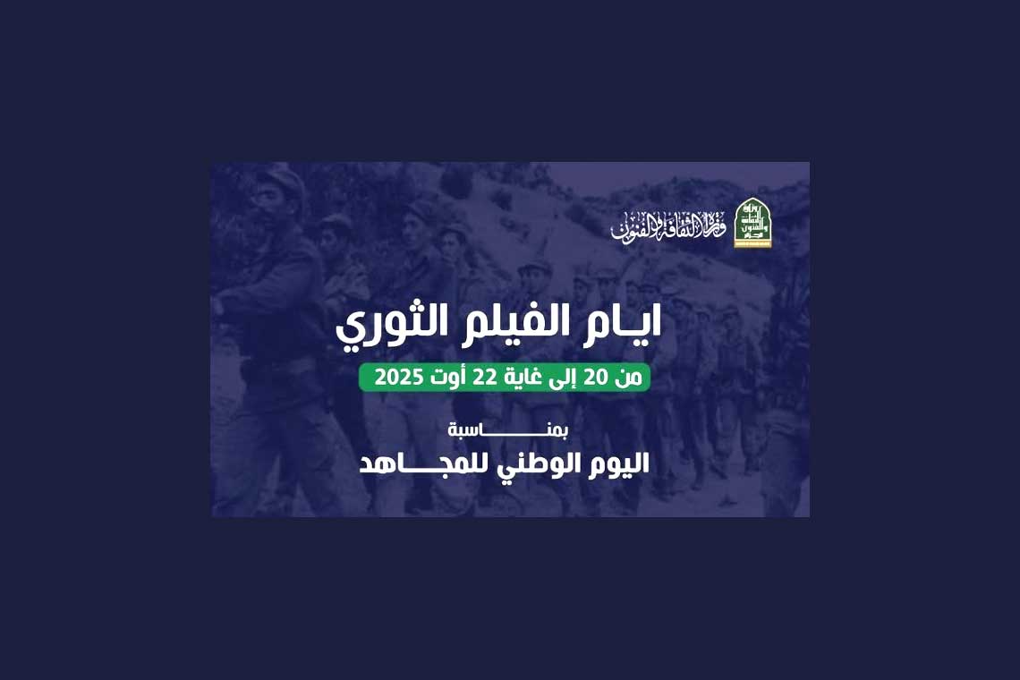 وبمناسبة “أيام الفيلم الثوري” ، تم عرض الفيلم التاريخي “زيغود يوسف (1921-1956)” للمخرج مؤنس خمار وسيناريو تليلاني، من إنتاج وزارة المجاهدين وذوي الحقوق، بمشاركة علي ناموس في دور الشهيد زيغود يوسف، مع موسيقى تصويرية من إنجاز صافي بوتلة. وتتواصل الفعالية إلى غاية 22 أوت الجاري عبر قاعات السينما الوطنية، مع برمجة أفلام ثورية روائية ووثائقية لترسيخ قيم ثورة نوفمبر وحماية الذاكرة الوطنية.