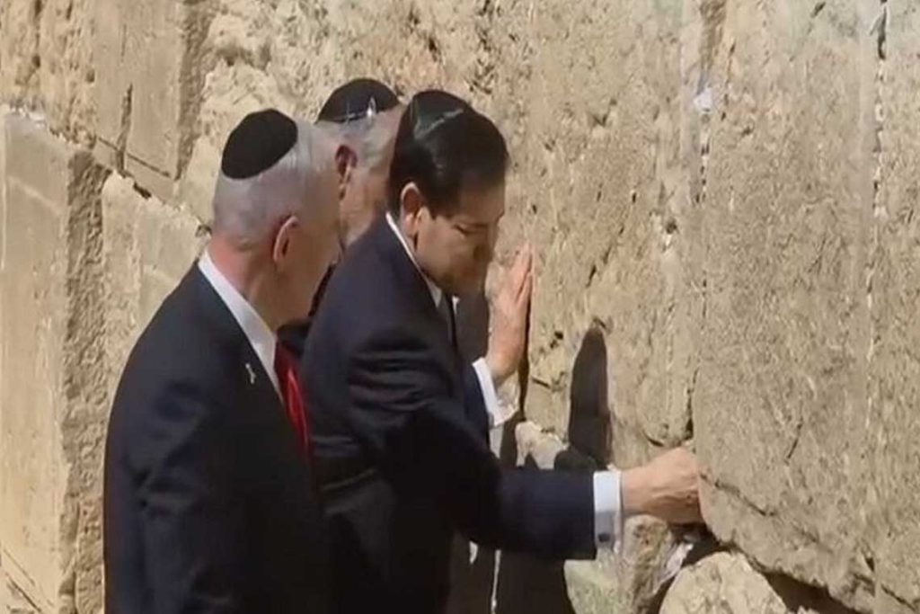 وخلال الزيارة، ظهر روبيو برفقة رئيس الوزراء الإسرائيلي، بنيامين نتنياهو، عند حائط البراق في القدس المحتلة ، حيث أديا مراسم الصلاة التلمودية، متبعين الطقوس الدينية اليهودية التقليدية، بما في ذلك ارتداء الكيباه ووضعها على الرأس.
