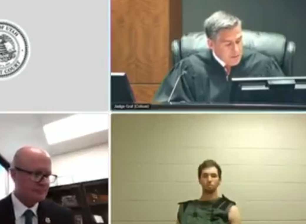 و لم يكن المتهم حاضرًا شخصيًا في قاعة المحكمة، بل حضر الجلسة عبر الفيديو من داخل السجن بولاية يوتا.