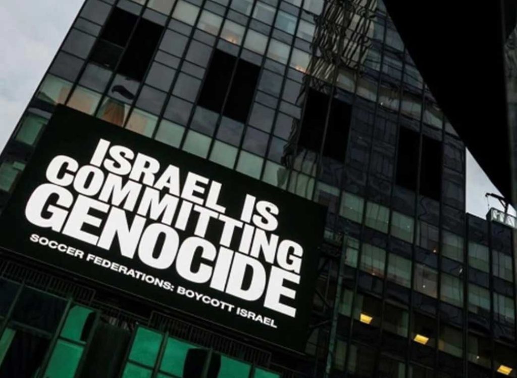 أطلق تحالف يضم هيئات مناصرة ومجموعات من مشجعي كرة القدم حملة جديدة تحت اسم “انتهت اللعبة يا إسرائيل” (Game_Over_Israel)، وذلك عبر لوحة إعلانية ضخمة في ميدان تايمز سكوير بنيويورك. وتأتي هذه المبادرة قبل أشهر من انطلاق كأس العالم لكرة القدم 2026 الذي تستضيفه الولايات المتحدة وكندا والمكسيك، حيث ستقام المباراة النهائية في نيويورك.