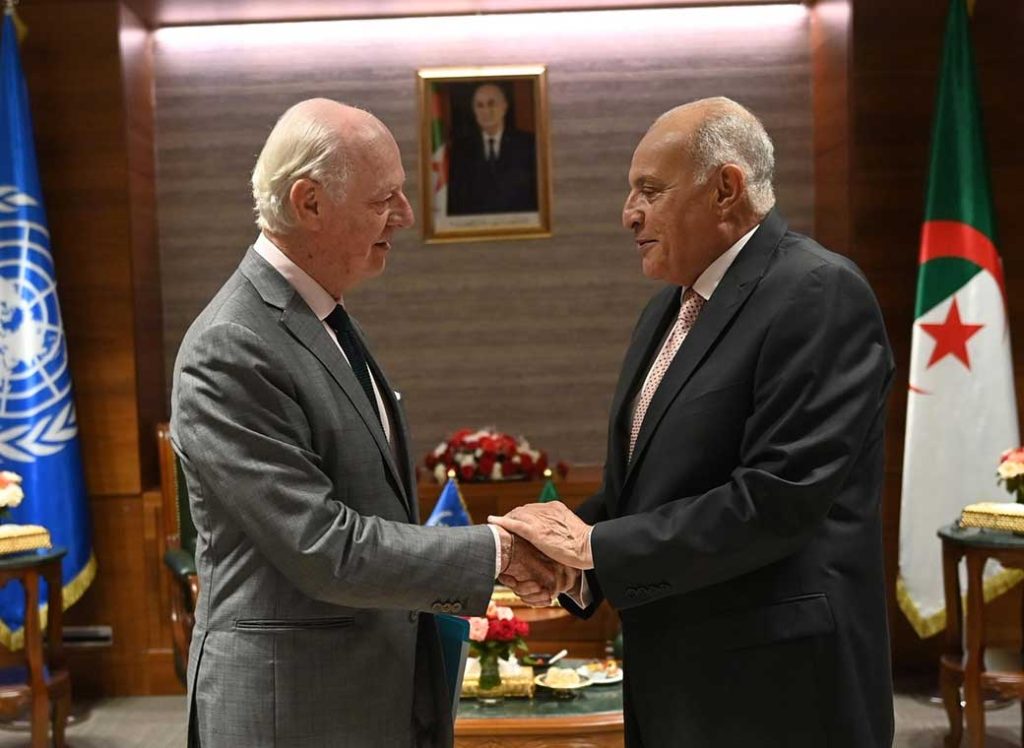 استقبل وزير الشؤون الخارجيةالجزائري، أحمد عطاف، مساء الثلاثاء، المبعوث الشخصي للأمين العام للأمم المتحدة إلى الصحراء الغربية، ستافان دي ميستورا، الذي يجري زيارة رسمية إلى الجزائر. وتأتي الزيارة في سياق التحضيرات الجارية لاجتماع مجلس الأمن الدولي المقرر في أكتوبر المقبل، حيث سيعرض دي ميستورا تقريره بشأن الجهود المبذولة لتنفيذ مهمته.
