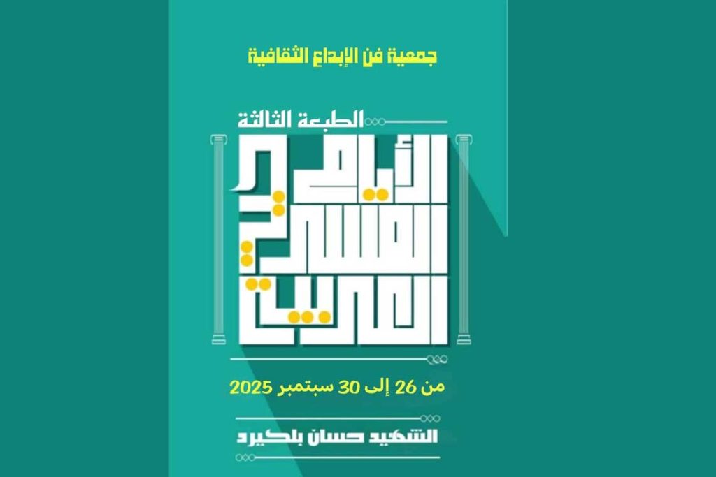 تستعد مدينة سطيف لاحتضان الطبعة الثالثة من الأيام العربية للمسرح، التي تحمل اسم الشهيد حسان بلكيرد، في الفترة الممتدة من 26 إلى 30 سبتمبر 2025، بدار الثقافة هواري بومدين. وتُنظم هذه التظاهرة الثقافية من طرف جمعية فن الإبداع والثقافة بسطيف، التي تهدف من خلالها إلى جعل المسرح فضاءً للتلاقي والحوار والإبداع.