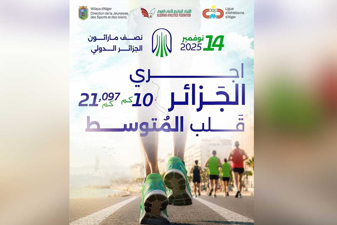 تستعد العاصمة الجزائرية لاحتضان نصف ماراثون الجزائر الدولي يوم 14 نوفمبر 2025، بمسافتين 10 كلم و21 كلم، بمشاركة عدائين من داخل وخارج الوطن.