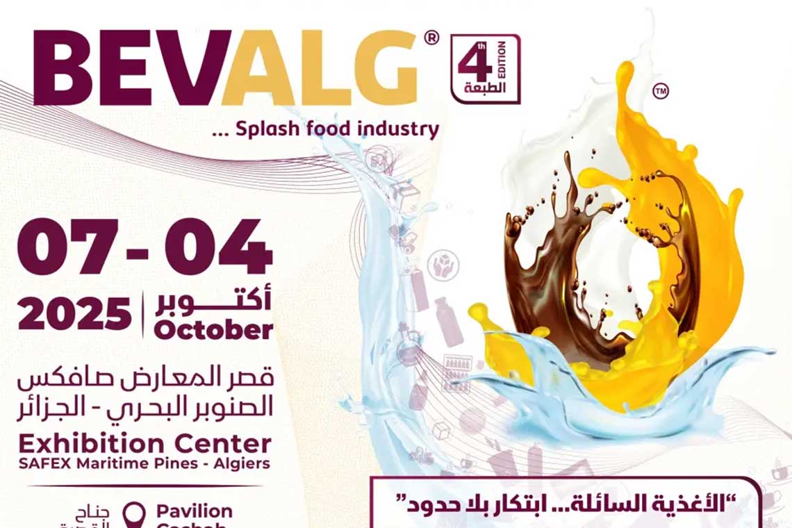 تستعد الجزائر لاحتضان الطبعة الرابعة للمعرض الدولي لصناعة المشروبات والأغذية السائلة “بيفالج” 2025 “BEVALG”، المزمع تنظيمه من 4 إلى 7 أكتوبر المقبل بقصر المعارض الصنوبر البحري بالعاصمة. ويهدف هذا الحدث إلى تسليط الضوء على التطورات الراهنة في القطاع الغذائي، بما يعزز الأمن الغذائي ويحمي القدرة الشرائية، ويساهم في رفع تنافسية المنتج الجزائري في أسواق إفريقيا ومنطقة البحر الأبيض المتوسط.
