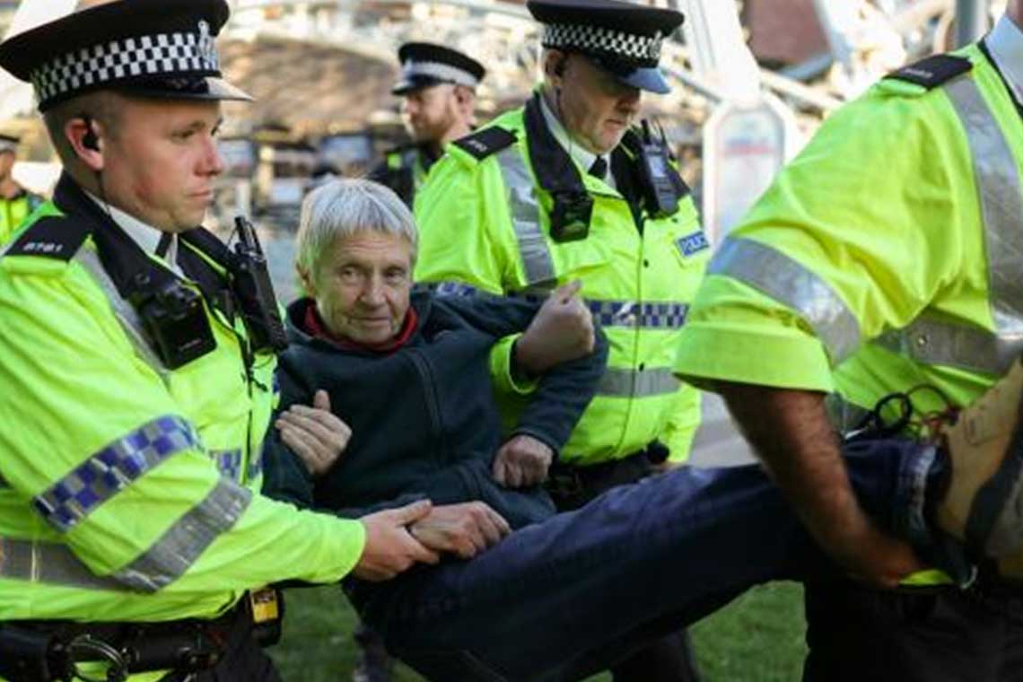 و من بين المعتقلين، كان هناك رجل مسن يبلغ من العمر 83 عامًا، تم اعتقاله أثناء احتجاج سلمي قرب عجلة ليفربول، حيث رفع المتظاهرون لافتات تدين الإبادة الجماعية وتؤيد المنظمة المحظورة.