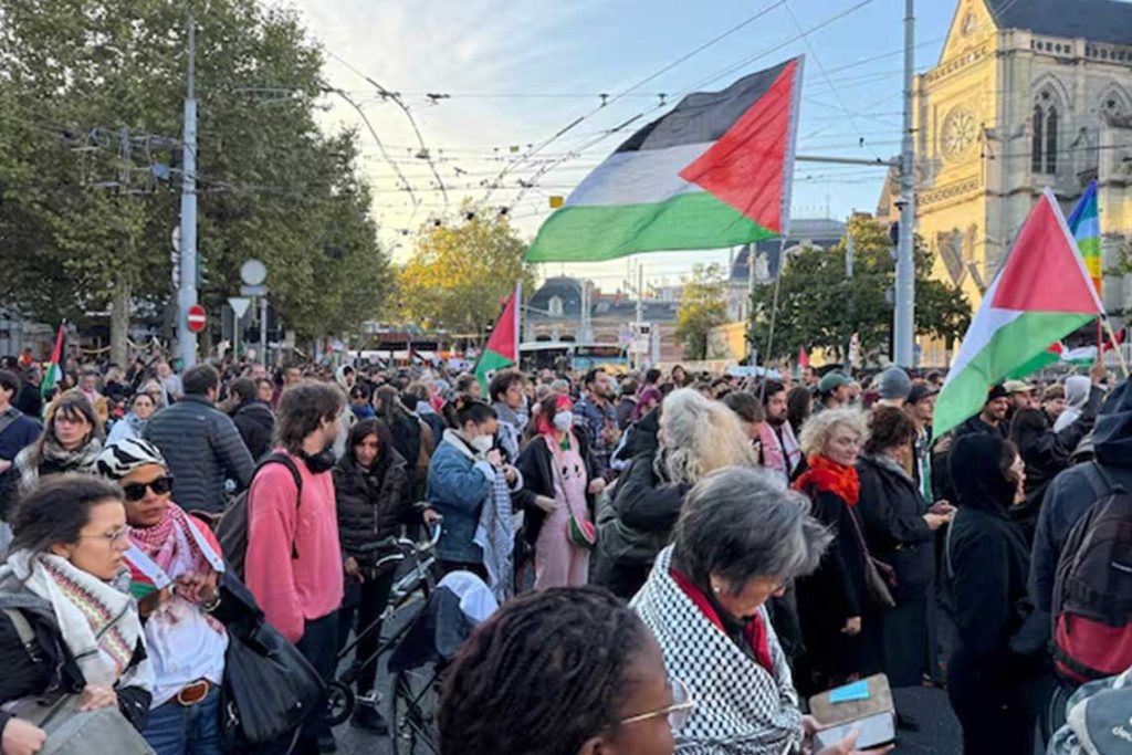 شهدت عدة مدن سويسرية، وعلى رأسها جنيف، احتجاجات واسعة دعماً للقضية الفلسطينية، بالتزامن مع اعتراض إسرائيل أسطول الصمود المتجه نحو غزة.