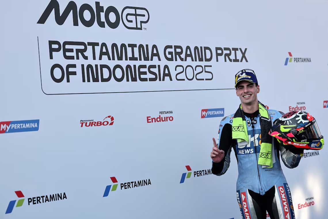 حقق الإسباني فيرمين ألديجير، البالغ من العمر (20 عامًا و183 يومًا)، أول انتصار في مسيرته ضمن بطولة العالم للدراجات النارية، بعد فوزه المذهل في جائزة إندونيسيا الكبرى التي أُقيمت اليوم الأحد، متقدّمًا بفارق تسع ثوانٍ عن منافسه بيدرو أكوستا متسابق فريق “كيه.تي.إم”، فيما أكمل أليكس ماركيز منصة التتويج بحلوله ثالثًا.