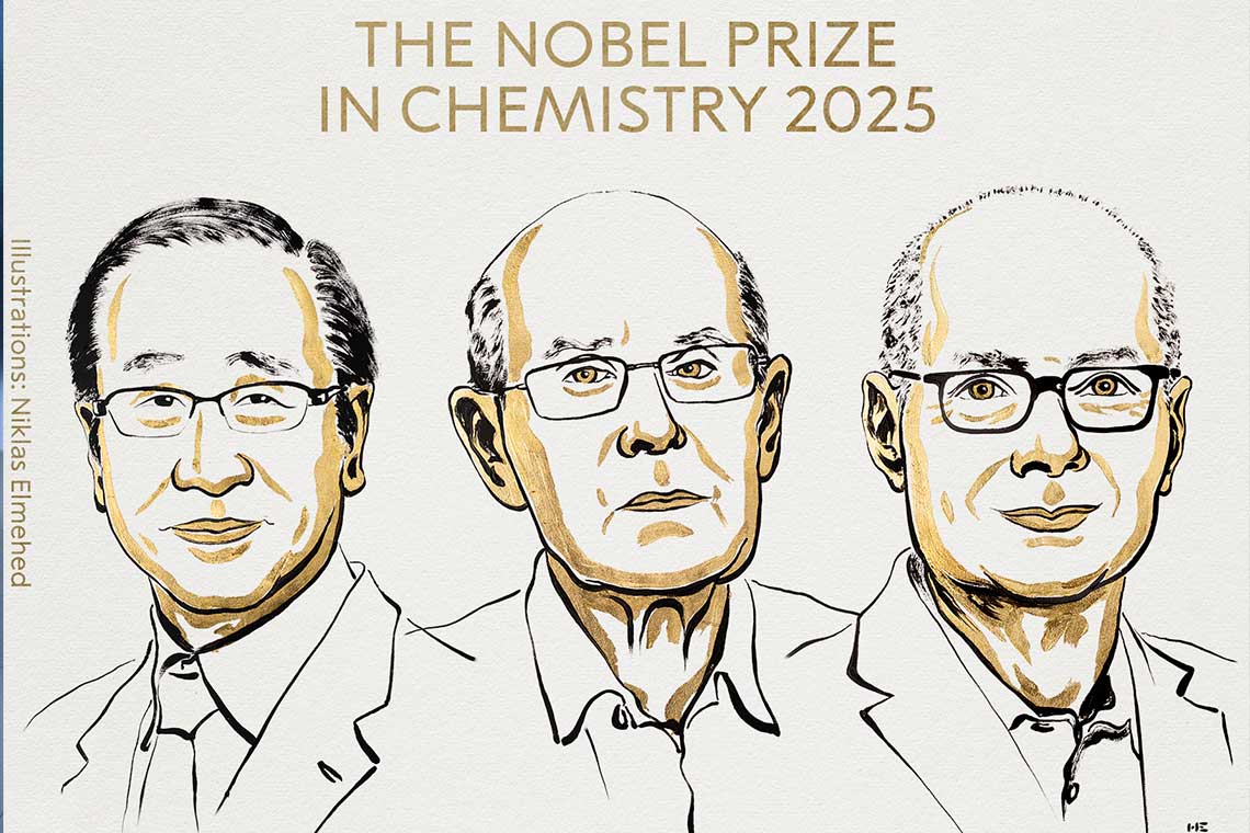 أعلنت الأكاديمية الملكية السويدية للعلوم يوم 8 أكتوبر 2025 عن منح جائزة نوبل للكيمياء لثلاثة علماء تقديرًا لإنجازاتهم في مجال الأطر العضوية المعدنية (MOFs)، وهي مواد نانوية تتميز بهياكل مسامية فريدة تمكن من تخزين الغازات وفصلها وتحفيز التفاعلات الكيميائية بكفاءة عالية. وتشير هذه المواد إلى تقدم علمي مهم في التطبيقات البيئية والصناعية، بما في ذلك التقاط ثاني أكسيد الكربون، تنقية المياه، وتخزين الهيدروجين.
