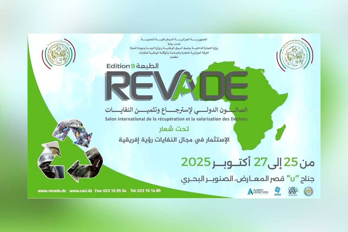 تستعد الجزائر لاحتضان الطبعة التاسعة من الصالون الدولي لاسترجاع وتثمين النفايات “ريفاد” “REVADE”، في الفترة الممتدة من 25 إلى 27 أكتوبر الجاري، بقصر المعارض بالصنوبر البحري في العاصمة، في تظاهرة تسعى إلى تكريس التحول نحو الاقتصاد الدائري وتعزيز الشراكات البيئية داخل القارة الإفريقية.