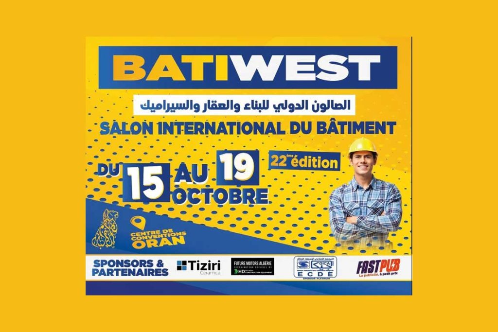ستضيف مركز المؤتمرات “محمد بن أحمد” بوهران من 15 إلى 19 أكتوبر الجاري فعاليات الطبعة الـ(22) للصالون الجزائري للعقار والبناء والسكن والأشغال العمومية “باتي واست 2025” “BATIWEST ORAN”، بمشاركة نحو (120) عارضًا من مؤسسات وطنية وأجنبية، من بينها شركات من إسبانيا وتركيا واليونان وألمانيا.