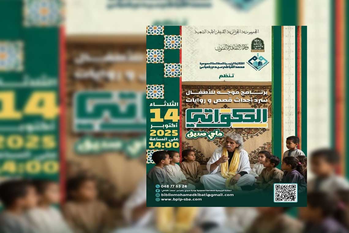 احتضنت المكتبة الرئيسية للمطالعة العمومية “محمد القباطي” في سيدي بلعباس فعاليات تظاهرة “الحكواتي من التراث الشعبي الجزائري القديم”، التي تهدف إلى تعزيز حضور التراث الثقافي بين الأطفال بطريقة تربوية وترفيهية. المصدر: مديرية المكتبة