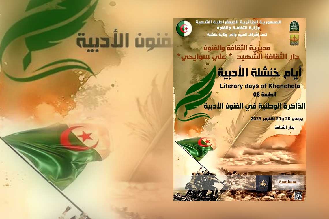 تنظم دار الثقافة على سوايحي الطبعة الثامنة لأيام خنشلة الأدبية يومي 20 و21 أكتوبر الجاري، وفق ما أفادت به مديرة المؤسسة السيدة سامية مرزوقي.