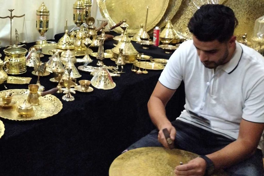 يهدف مهرجان “اليد الذهبية”، المنظم بمبادرة من جمعية “البهاء” للفنون والثقافات الشعبية والشباب، إلى إبراز إبداعات الحرفيين وتشجيع تبادل الخبرات بينهم. ويضم الحدث صالونًا وطنيًا للصناعات التقليدية بمشاركة 23 حرفيًا في مجالات متعددة مثل الفخار، والخزف، والنحاس، إلى جانب معرض للفن التشكيلي يعرض أعمال 21 فنانًا من مختلف المدارس الفنية.