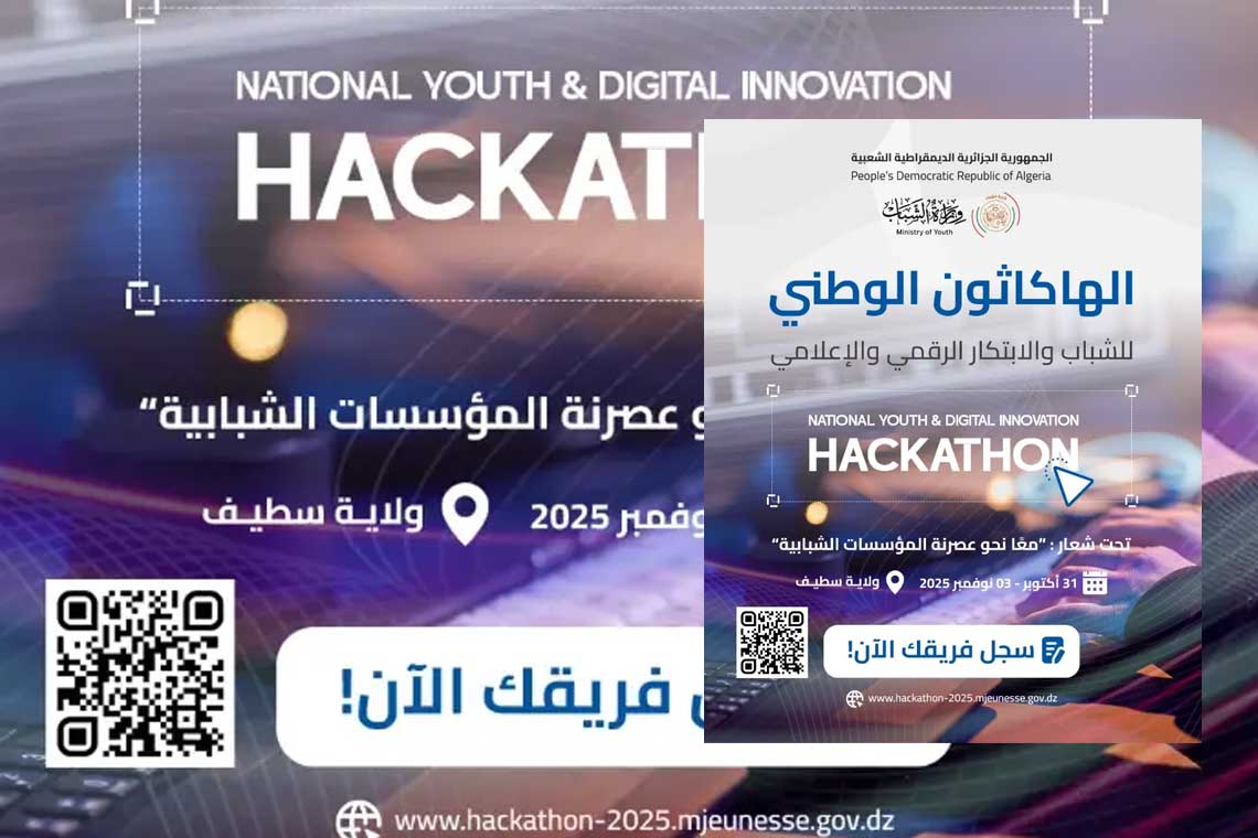 تطلق وزارة الشباب ابتداء من 31 أكتوبر الجاري، الهاكاثون الوطني الأول للشباب والابتكار الرقمي والإعلامي، بهدف تمكين الشباب من الإسهام في تصميم أدوات العمل وتصور أنشطة مؤسساتهم، حسب بيان الوزارة. وتستمر تظاهرة الهاكاثون الوطني حتى 3 نوفمبر 2025 بولاية سطيف تحت شعار: “معا نحو عصرنة المؤسسة الشبابية”.