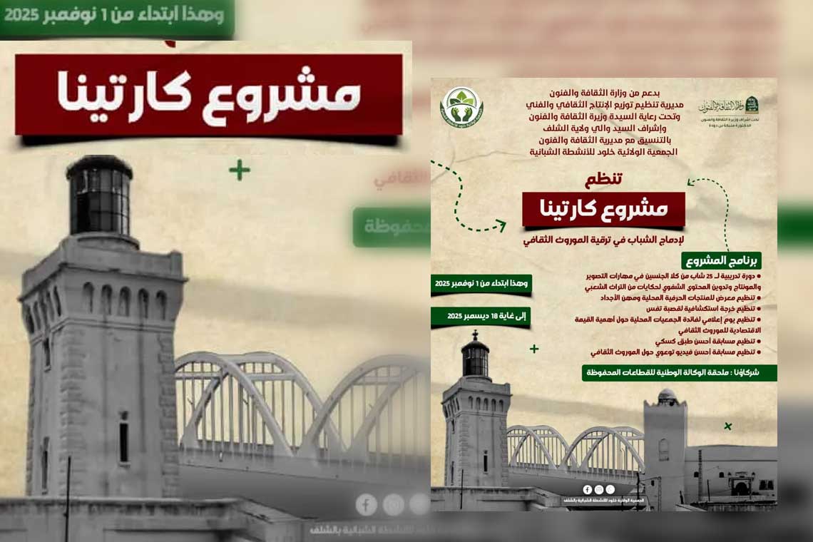 يمتد المشروع من 1 نوفمبر إلى 18 ديسمبر 2025، ويُنتظر أن يسهم في تمكين الشباب والمرأة الحرفية من لعب دور فاعل في حفظ التراث وتثمينه، وتعزيز التبادل الثقافي والسياحي داخل الولاية. وهكذا، لا يكتفي “كارتينا” بإحياء الذاكرة، بل يسعى إلى نقلها إلى العالم الرقمي، حيث يصبح الموروث أداة للتجديد والتواصل عبر الأجيال.