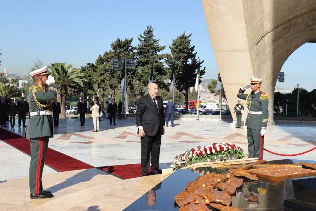 أحيا الرئيس الجزائري، عبد المجيد تبون، صباح اليوم السبت، الذكرى الـ71 لاندلاع الثورة التحريرية المجيدة، من خلال زيارة إلى مقام الشهيد بالعاصمة، حيث ترحم على أرواح شهداء الثورة الذين سطروا بدمائهم ملحمة الاستقلال والحرية.