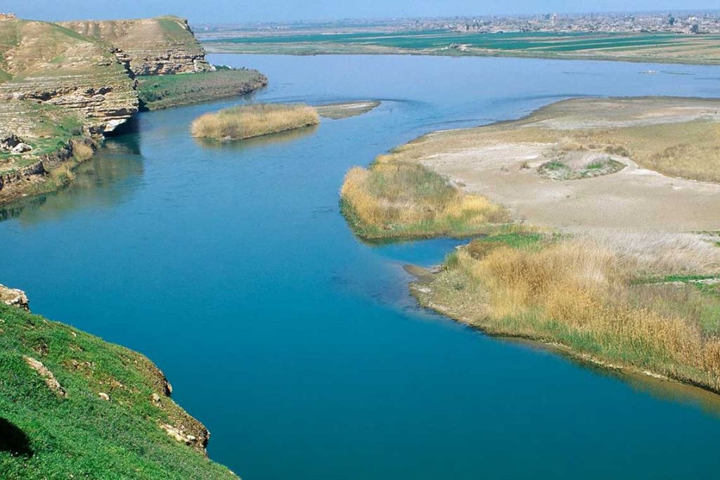 و يُعدّ نهر دجلة أحد أهم الأنهار في غرب آسيا، يبلغ طوله نحو 1,850 كيلومترًا، وينبع من جبال طوروس الجنوبية الشرقية في تركيا، عند ارتفاع يقارب 4,000 متر فوق سطح البحر. يدخل العراق عند بلدة فيشخابور على الحدود مع سوريا، ويتفرع داخله إلى عدة روافد رئيسية مثل الزاب الكبير والزاب الصغير وديالى والعظيم، وتصل تصريفاته المائية المتوسطة إلى نحو 1,200 متر مكعب في الثانية في المواسم الرطبة، لكنها تتراجع إلى أقل من 300 متر مكعب/ثانية في الصيف. يستخدم دجلة لتغذية سد الموصل وسد سامراء وعدد من مشاريع الري الكبرى، كما يشكل موردًا أساسيا لمياه الشرب والطاقة الكهرومائية.