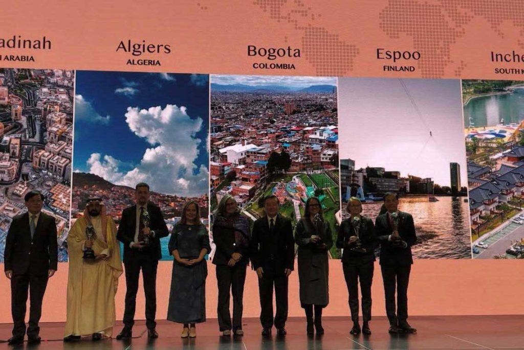 وجرى حفل تسليم جائزة العاصمة الجزائر ضمن أفضل خمس مدن في العالم في العاصمة الكولومبية بوغوتا بمناسبة اليوم العالمي للمدن، حيث تسلّم الجائزة رئيس ديوان ولاية الجزئار عبد الرحمن روابحي، نيابة عن والي العاصمة محمد عبد النور رابحي. وأوضح البيان أن هذا التتويج يعكس “رؤية الجزائر لعاصمة حديثة، شاملة، ومستدامة بحلول عام 2030”.
