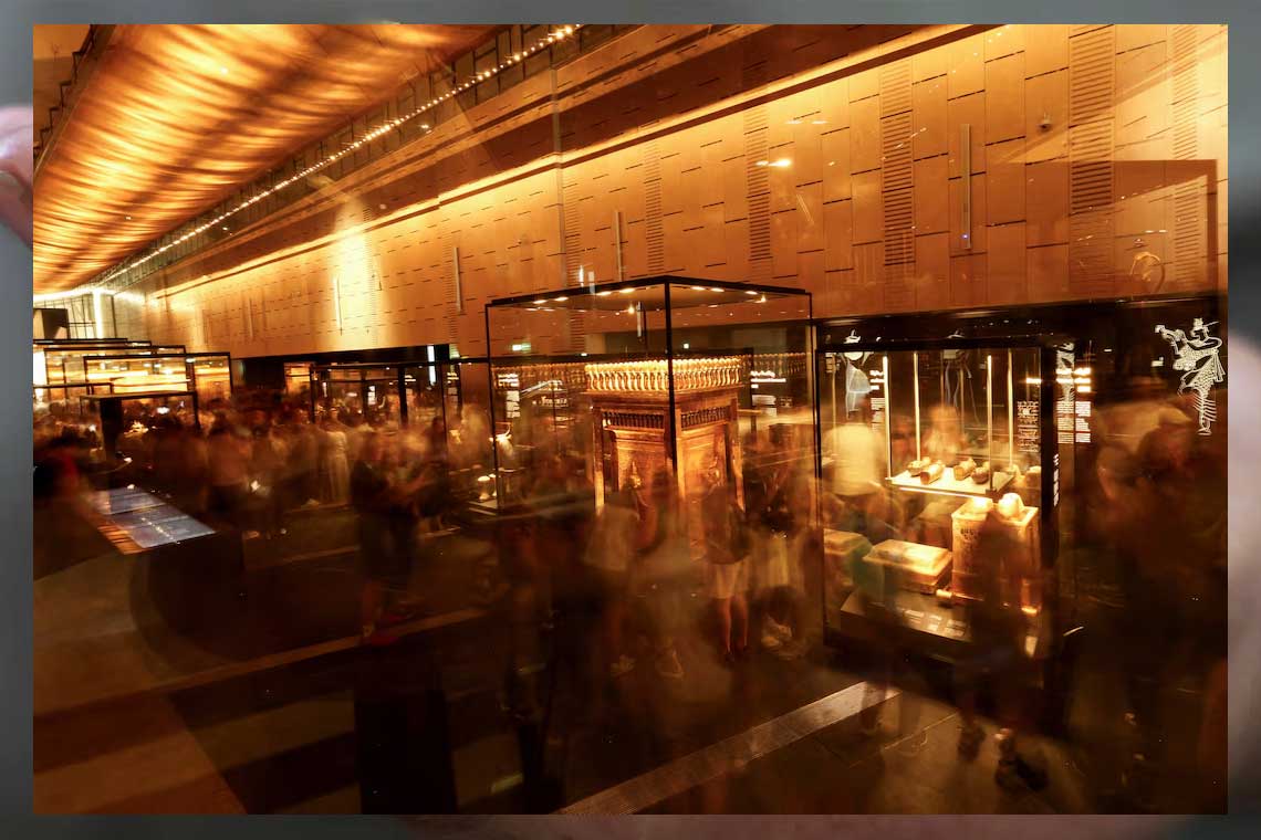 و يقع المتحف المصري الكبير بالقرب من أهرامات الجيزة على مساحة تقارب 500 ألف متر مربع، ويضم أكثر من 100 ألف قطعة أثرية، من بينها مجموعة الملك توت عنخ آمون التي تُعرض كاملة لأول مرة منذ اكتشاف مقبرته عام 1922 في وادي الملوك بالأقصر.