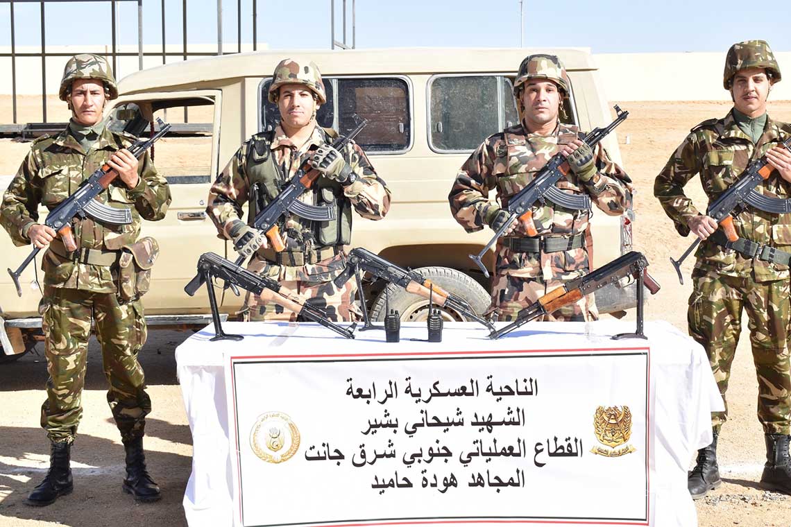 في مناطق تمنراست وبرج باجي مختار وإن قزام وإليزي وجانت، أوقفت مفارز الجيش (566) شخصاً وضبطت (37) مركبة و(261) مولداً كهربائياً و(146) مطرقة ضغط، إلى جانب كميات من خليط خام الذهب والحجارة وتجهيزات التنقيب غير المشروع عن الذهب. كما تم توقيف (14) شخصاً وضبط (3) مسدسات رشاشة كلاشينكوف، و(1) مسدس آلي، و(16) بندقية صيد، و(100.60) لتر من الوقود، و(6) أطنان من المواد الغذائية الموجهة للتهريب والمضاربة.