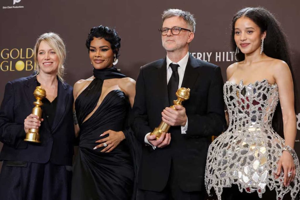 وعلى صعيد التمثيل، حقق الممثل تيموثي شالاميه مفاجأة لافتة بفوزه بجائزة أفضل ممثل في فيلم موسيقي أو كوميدي عن دوره كلاعب تنس طاولة محترف في فيلم «مارتي سوبريم»، متفوقًا على أسماء بارزة من بينها ليوناردو دي كابريو وجورج كلوني. وأعرب شالاميه عن اعتزازه بالفوز، معتبرًا أن إخفاقاته السابقة جعلت هذه الجائزة أكثر قيمة بالنسبة له.